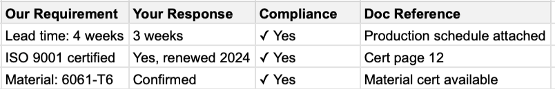 → Here’s the truth: We score RFQ responses on multiple factors, not just price.